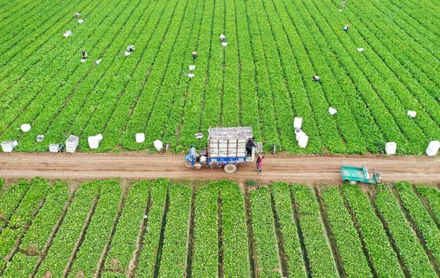 11月10日,在周口市淮阳区宛丘生态农场的千亩供港蔬菜种植基地,头茬的广东菜心迎来了上市季节,一垄垄绿油油的菜心长势喜人,来自贵州省安顺市紫云县的60余名“职业菜客”正在田间加紧采摘,一筐筐新鲜的菜心经过工人的精心采收,然后装车外运,田间地头呈现出一派丰收的繁忙景象。